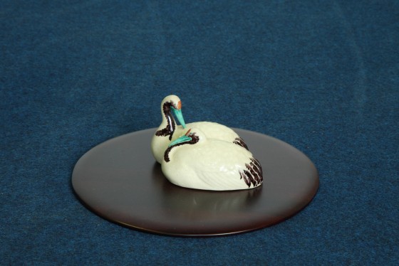 添:八瀬巣立溜石 初代香山瑠璃釉楕円水盤