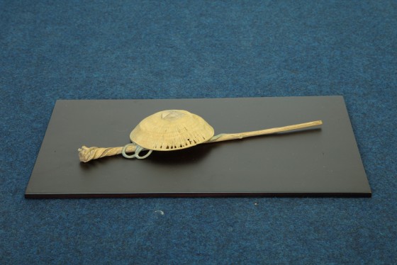 静寂の中に置かれた旅僧の笠と杖。綻びたその姿は“旅の終”を感じさせます。