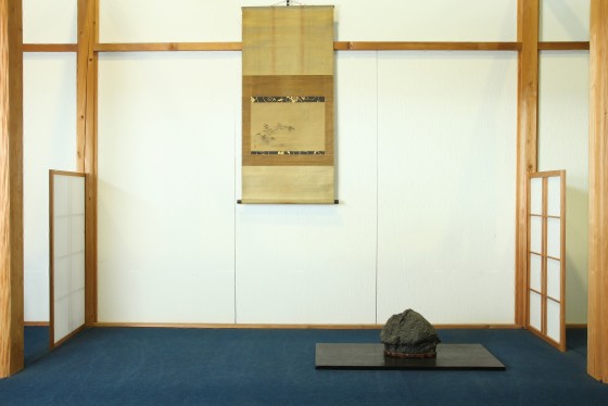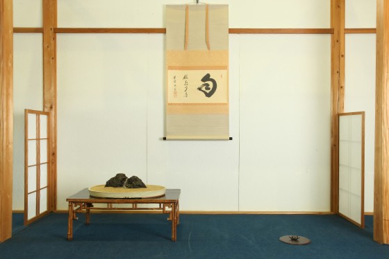 “月光松根を照らす”の禅語を具現。老松の脇に置かれた控えめな滝姿がそこにある世界の深淵さを物語っています。
