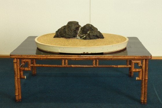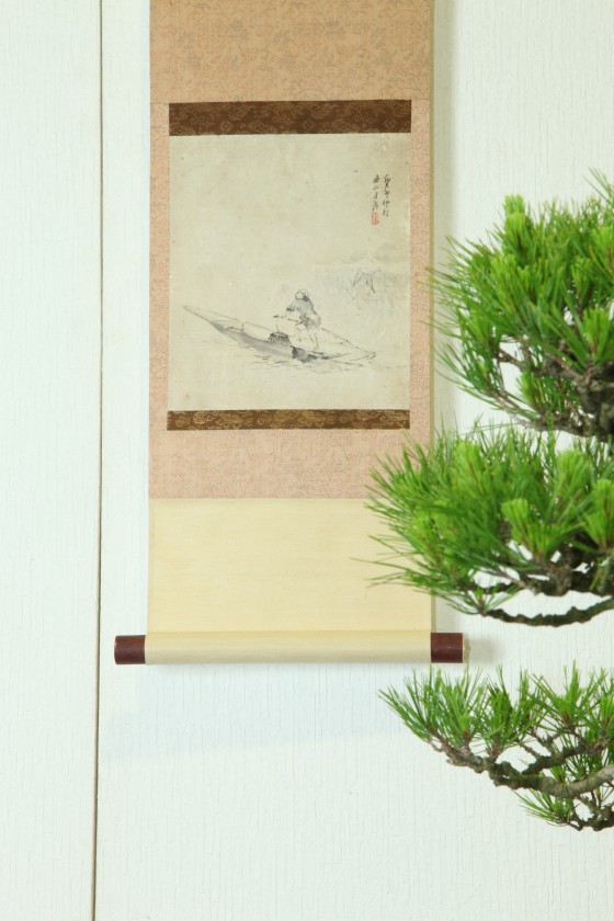 くずや石、苫舟画共に文人盆栽の三昧境です。