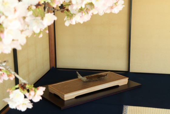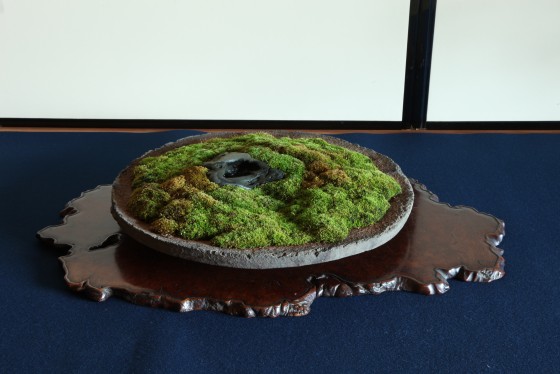 席主は、この盆栽を深遠な奥深い自然とし、春の息吹を思わせる苔と水溜り石、そして、