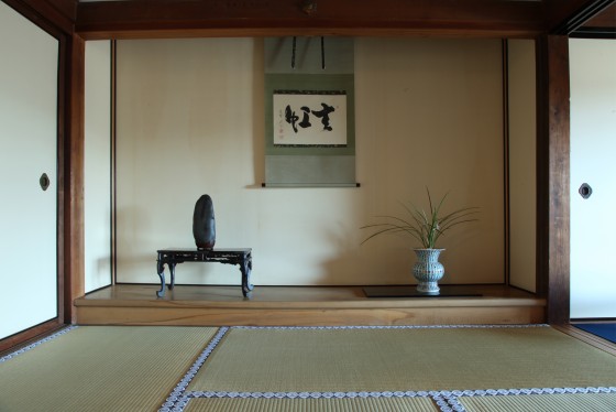 堂本印象の筆による「聴無声(声なきを聴く)」は、水石飾りとしてまさに絶妙な一席です。