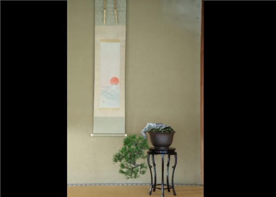 掛物と盆栽の響き合う聲が迷雲亭の中に気韻として広がります。