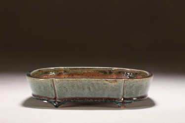 大岭山作 緑釉辰砂窯変単縁隅入足付長方