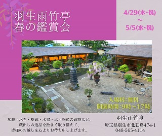 羽生雨竹亭にて「春の鑑賞会」を開催いたします。